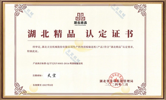 The company declared "Yichang Complete Bulk Processing Equipment Engineering Technology Research Center" through Yichang City level certification;