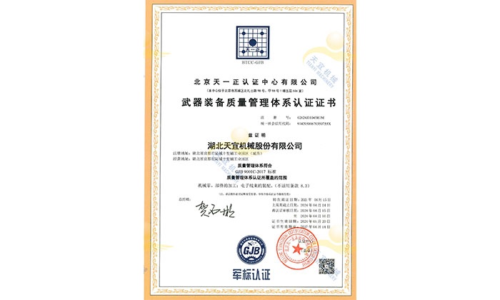 The company has passed the weapons and equipment quality management system certification;