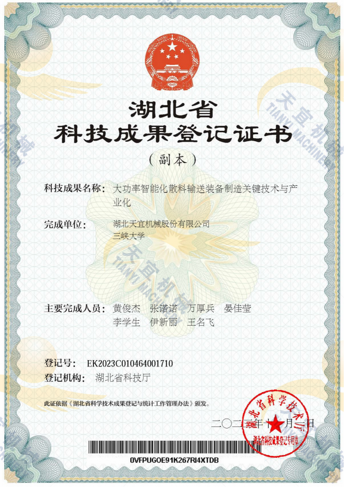 Certificate of Registration of Provincial Scientific and Technological Achievements
