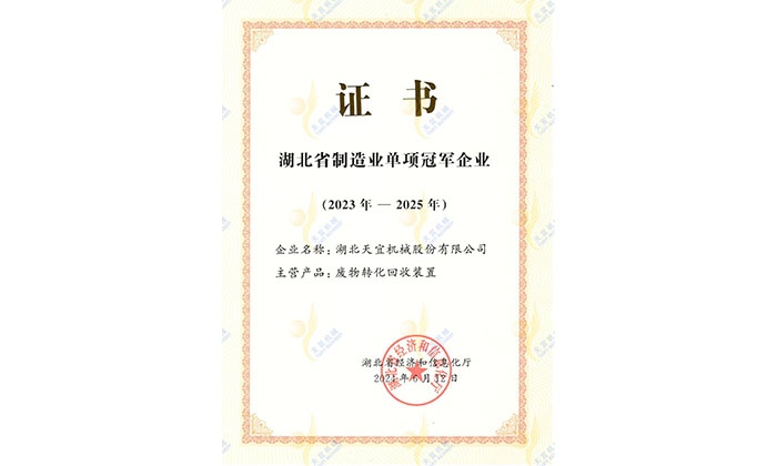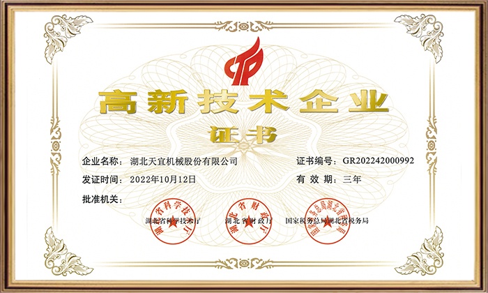 The company declared "Yichang Complete Bulk Processing Equipment Engineering Technology Research Center" through Yichang City level certification;
