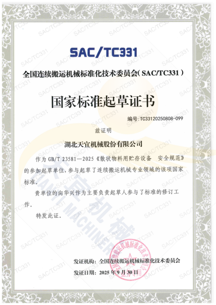 National Standard Drafting Certificate for Bulk Material Storage Equipment